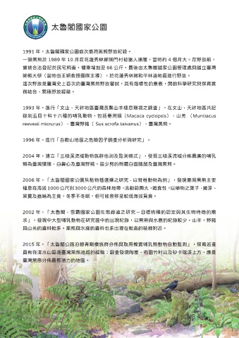1991 年,太魯閣國家公園首次臺灣黑熊野放紀錄。