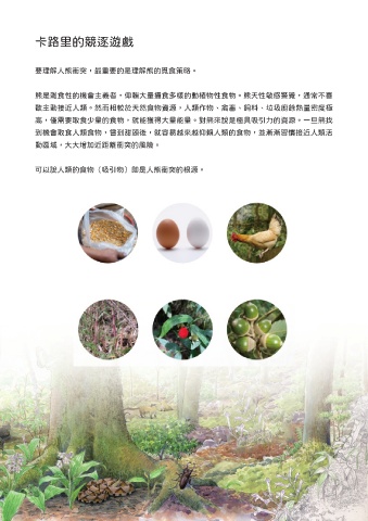 卡路里的競逐遊戲 要理解人熊衝突,最重要的是理解熊的覓食策略。 熊是雜食性的機會主義者,仰賴大量攝食多樣的動植物性食物。熊天性敏感警覺,通常不喜 歡主動接近人類。然而相較於天然食物資源,人類作物、禽畜、飼料、垃圾廚餘熱量密度極 高,僅需要取食少量的食物,就能獲得大量能量。對熊來說是極具吸引力的資源。一旦熊找 到機會取食人類食物,嘗到甜頭後,就容易越來越仰賴人類的食物,並漸漸習慣接近人類活 動區域,大大增加近距離衝突的風險。 可以說人類的食物(吸引物)即是人熊衝突的根源。