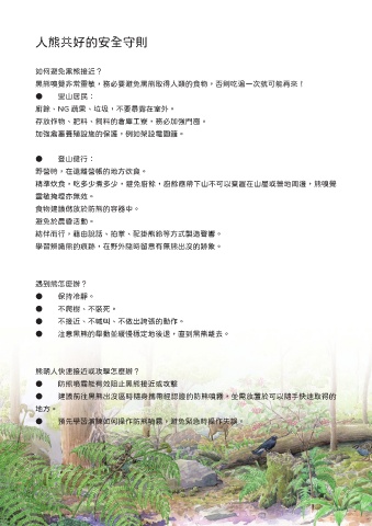 ● 建議前往黑熊出沒區時隨身攜帶經認證的防熊噴霧,並需放置於可以隨手快速取得的