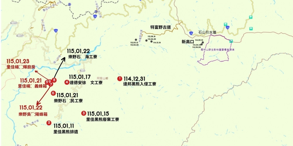 1、如發現黑熊侵擾事件,請立即通報0800-000930(您您您救山林)