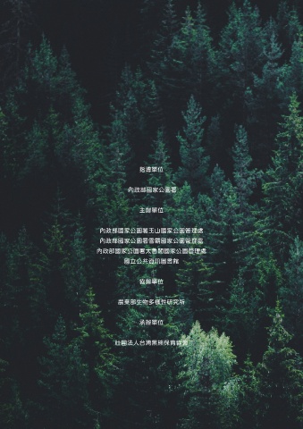 指導單位 內政部國家公園署 主辦單位 內政部國家公園署玉山國家公園管理處 內政部國家公園署雪霸國家公園管理處 內政部國家公園署太魯閣國家公園管理處 國立公共資訊圖書館 協辦單位 農業部生物多樣性研究所 承辦單位 社團法人台灣黑熊保育協會