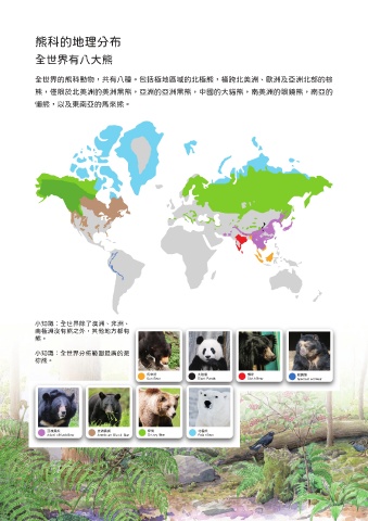 全世界的熊科動物,共有八種。包括極地區域的北極熊,橫跨北美洲、歐洲及亞洲北部的棕