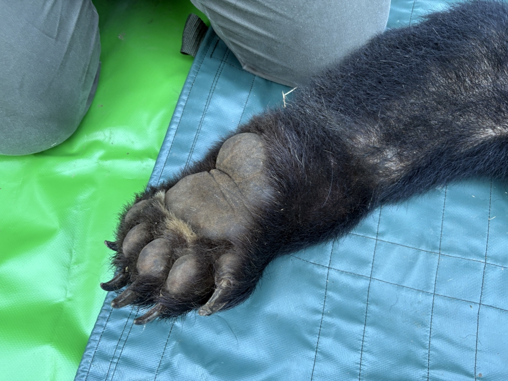 (黑熊左前肢無腫脹與外傷。圖片來源:林業及自然保育署花蓮分署 2025/10/5日新聞稿)